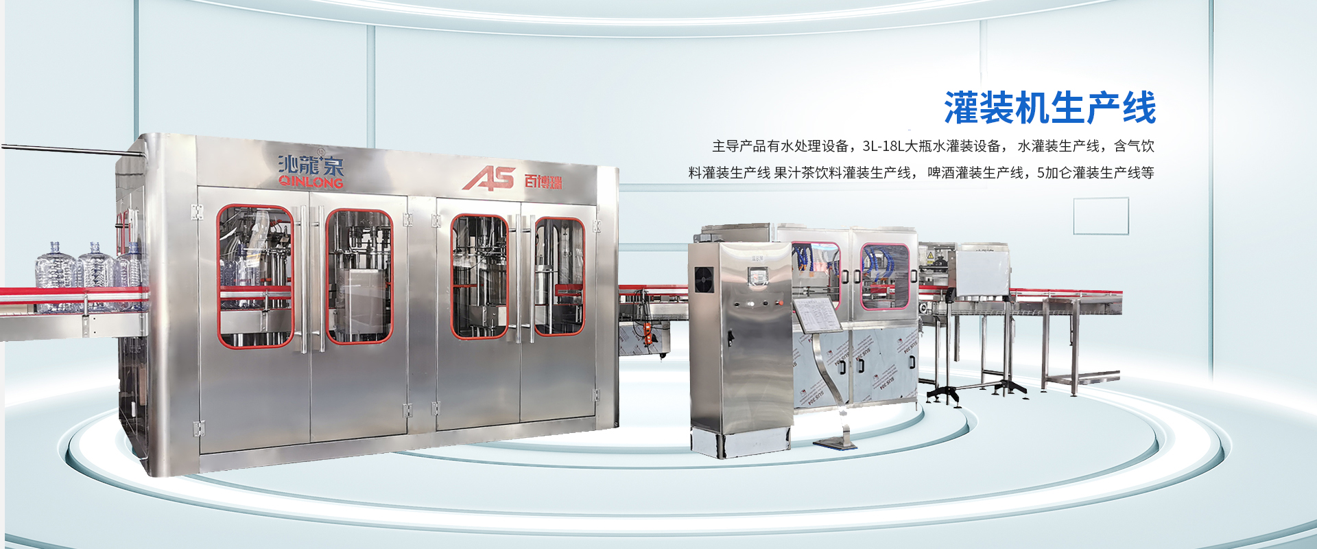 公司主導(dǎo)產(chǎn)品有水處理設(shè)備,3L-18L大瓶水灌裝機設(shè)備, 水灌裝生產(chǎn)線,含氣飲料灌裝生產(chǎn)線, 果汁茶飲料灌裝生產(chǎn)線, 啤酒灌裝生產(chǎn)線,5加侖灌裝生產(chǎn)線等。能夠配套整個生產(chǎn)線